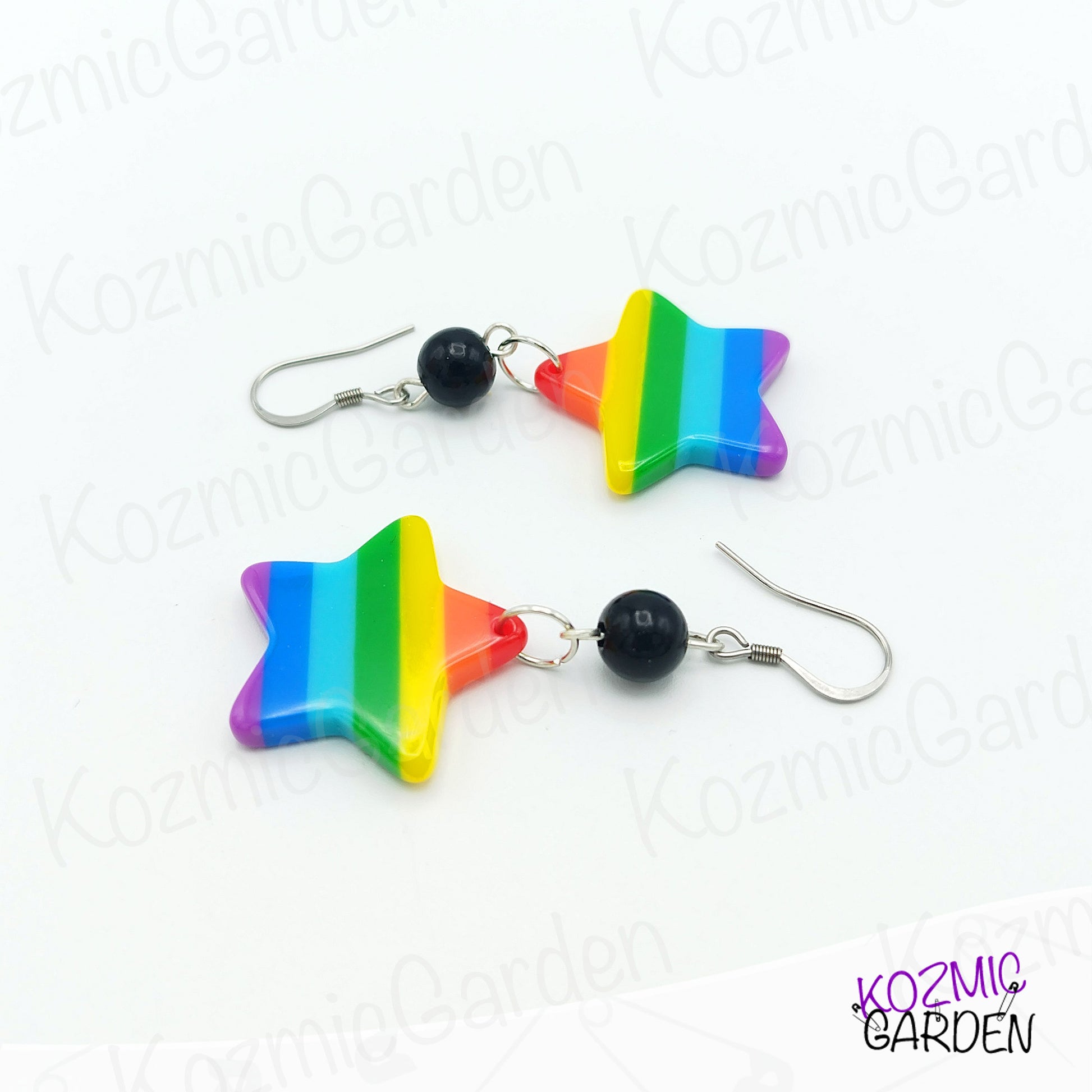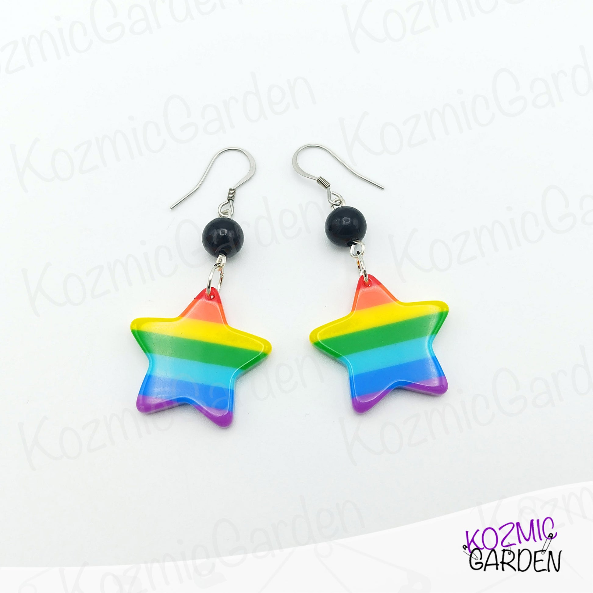 Rainbow Star Earrings with Black Beads – Become The Colorful Star of Pride!